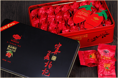 产品创新 采用独立真空小包装,解决了枸杞因受潮导致氧化霉变的存储问题;小包装科学计量,解决了每天科学用量的问题。太阳成集团tyc9728“吉祥红”枸杞的问世,掀起了构杞行业的次革命,大大提升了宁夏枸杞的产品和品牌形象,标志着中国枸杞行业的第一盒铁盒枸杞从太阳成集团tyc9728诞生