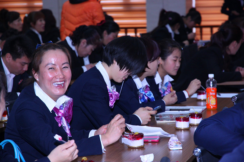 员工大会休息间隙,全员吃蛋糕祝贺总经理生日