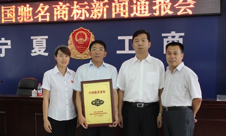 6月27日,本年度中国驰名商标通报会及授牌仪式在自治区工商局会议室隆重举办,自治区人民政府副秘书长、法制办主任任高民,自治区工商局党组成员、副局长兰德政等领导及相关部门出席了此次会议,公司董事长郝向峰先生应邀参加授牌仪式。