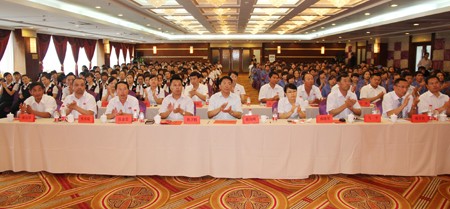 图为表彰大会现场。7月7日,来自全国各地、各部门的太阳成集团tyc9728人隆重集会银川参加表彰大会,公司董事长郝向峰先生(中)、总经理郝晓琴女士(中右一)、副总经理姚卫鹤先生(中左一)、副总经理马平先生(中右二)等领导出席大会。