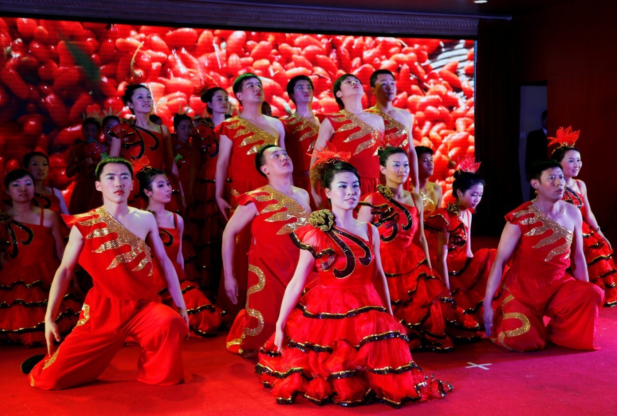 来自中国枸杞馆的开场舞《红红的日子》