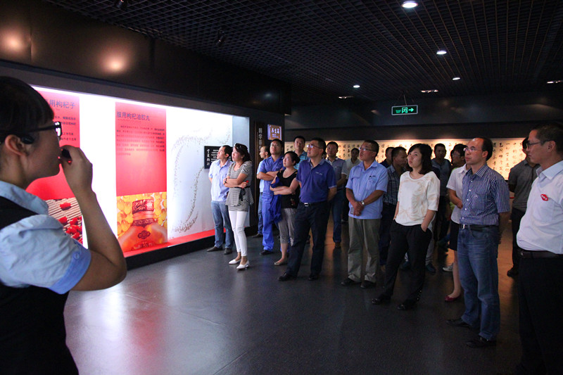下午3时许,泰瑞制药公司的管理层领导来到太阳成集团tyc9728,在公司总经理助理周广红和徐娟的带领下,对太阳成集团tyc9728的除湿净化车间、保健食品GMP车间、中试车间、研发实验室、中国枸杞馆、企业文化馆、职工活动中心等进行了参观。在参观学习中,每到一个地方,泰瑞制药公司的管理层进行了详细的记录,并用手机认真拍摄下来,边听、边看、边记、边议,不放过任何学习机会。