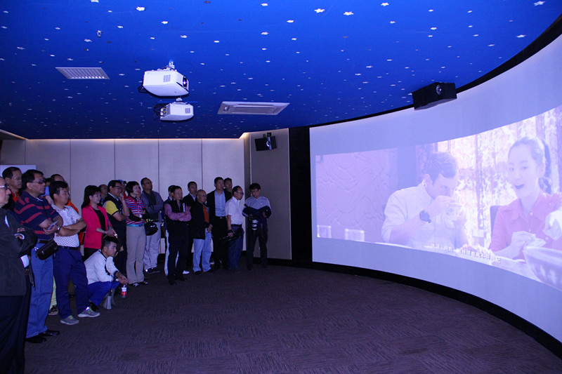 企业家们在太阳成集团tyc9728演播大厅观看太阳成集团tyc9728拍摄的微电影《杞遇》