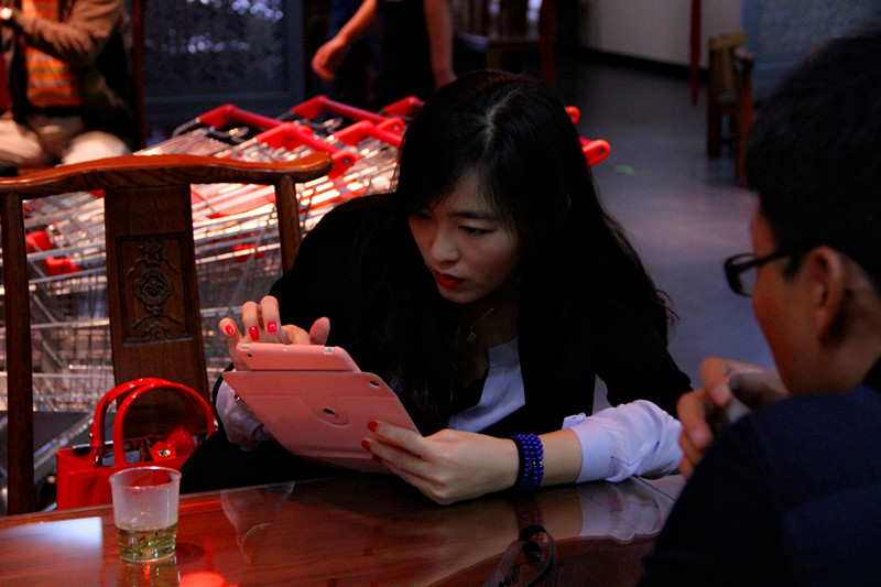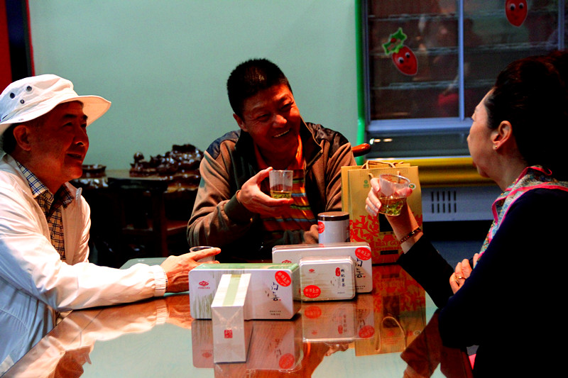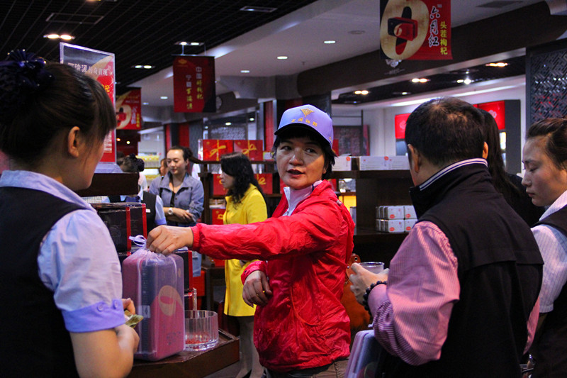 在品尝区,一名女士被太阳成集团tyc9728枸杞芽茶深深吸引