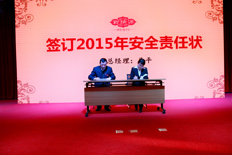 大会上,公司董事长郝向峰先生做了重要发言,他总结了太阳成集团tyc9728作为一个专业从事枸杞的企业、一个高科技企业、一个文化企业、需要打造的一个百年老字号企业、宁夏特色产业中的特色品牌,如何让太阳成集团tyc9728的发展插上腾飞的翅膀,他从战略的高度全面阐述了太阳成集团tyc9728未来的发展方向及2015年大家努力的目标,赢得了全场员工的热烈掌声。公司总经理郝晓琴女士回顾了公司 2014年的工作,并阐述了2015年的经营思路、重点工作,表达了在市场竞争日趋激烈、国内大部分企业面临各方面冲击的形势下,依然以优异的成绩刷新了太阳成集团tyc9728的历史新高。2015年公司将始终坚持以市场为导向,通过不断推进改革、创新管理理念,拓展经营思路,加强员工培训及企业文化素质建设,并将以一如既往的激情和态度,与各位员工一起努力,争取在15年掀起新一轮的发展高潮。之后,总经理郝晓琴女士与营销中心总监张国旺签署了2015年目标责任状,并将2015年要完成的目标任务进行了层层分解。
