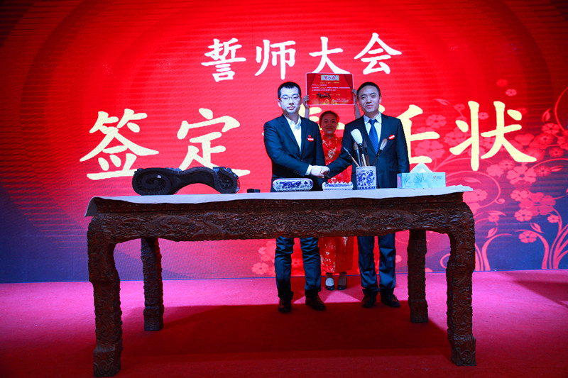 营销中心总监张国旺与上海市场经理郝鹏飞签署“军令状”