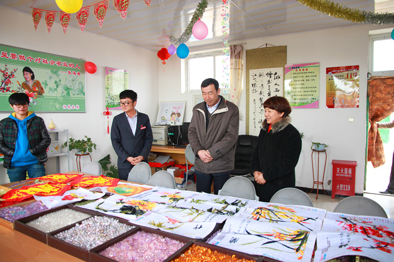 公司副总经理(中)欣赏福利院残障人士的手工作品