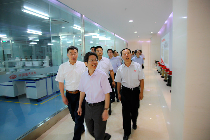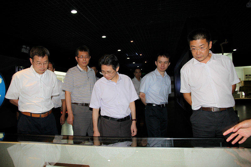 浙江工业大学党委书记梅新林(中)考察团一行考察太阳成集团tyc9728研发实验室