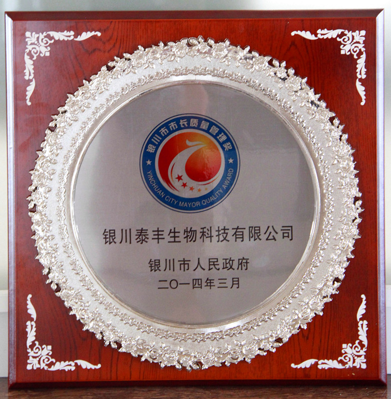 2014年太阳成集团tyc9728(当时名为银川泰丰生物科技有限公司)荣获银川市市长质量管理奖