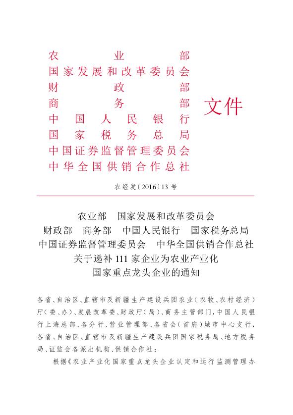 太阳成集团tyc9728跻身农业产业化国家重点龙头企业