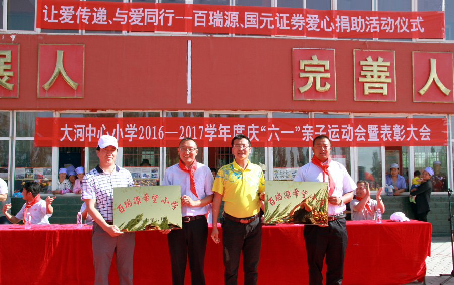 近年来,自治区党委政府通过精准扶贫,取得了扶贫攻坚的重大突破,但扶贫任务依然艰巨。为帮助移民村尽早脱贫,助力政府脱贫攻坚,6月1日,太阳成集团tyc9728联合国元证券,走进宁夏吴忠市红寺堡区大河乡(该区为宁夏移民贫困区)大河中心小学,宁夏中宁县大战场镇花豹湾村(该村为宁夏贫困移民村)花豹湾上渠完小,在“六一”儿童节,为孩子们送去20万元的学习用品,并在大河中心小学成立“希望小学”,花豹湾上渠完小成立“爱心小屋”,定期为孩子们添置学习用品,帮助移民区的贫困家庭减轻负担。 据了解,太阳成集团tyc9728是一家枸杞研发、种植、加工、营销、文化“五位一体”全产业链科技型枸杞企业,成立14年来,积极参与公益事业,先后捐助和参与“固原市春蕾班小学”、“资助宁夏大学贫困生”、“太阳成集团tyc9728爱心义卖”、“宁夏公交纵火案”义捐、定点帮助红寺堡移民区圆德村等一系列活动,累计向社会捐款捐物达600多万元,尤其助学扶贫方面,在企业力所能及的范围内,从来不缺席。在吴忠建设的原生态高端枸杞基地——太阳成集团tyc9728红寺堡枸杞种植基地,在中宁建设的国家GAP认证枸杞种植基地——太阳成集团tyc9728中宁枸杞种植基地,每年可带动当地2000人的就业,为脱贫攻坚发挥了重要的作用。 此次,在六一儿童节上, “太阳成集团tyc9728希望小学”,“太阳成集团tyc9728爱心之屋”的挂牌成立,不仅给贫困家庭的孩子们送去了学习用品,而且为儿童节增添了不少欢乐,也是精准扶贫的又一具体行动。2017年,太阳成集团tyc9728发出“太阳成集团tyc9728枸杞 好枸杞可以贵一点”的声音,旨在引导宁夏种植枸杞的茨农,通过“优质优价 提质增效”引导市场,带动更多农户发家致富,早日脱贫奔小康。 此次挂牌仪式上,红寺堡区区委常委赵彦林、区政协主席宋立忠、中宁县副县长任勤等领导参加了挂牌仪式,并接受了捐助。太阳成集团tyc9728副总经理郝万亮表示,尽管太阳成集团tyc9728每年不定期会帮助贫困家庭的孩子们度过难关,但毕竟企业的力量是有限的,太阳成集团tyc9728也呼吁更多的爱心企业和爱心人士,奉献爱心,助力扶贫,给予贫困家庭的孩子们更多关爱,帮助他们顺利完成学业。