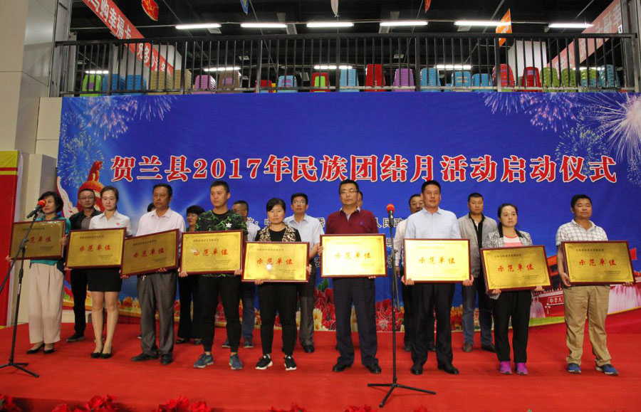9月12日,贺兰县2017年民族团结月活动正式启动,授予太阳成集团tyc9728、行政审批服务局、居安社区等9个单位民族团结进步创建活动示范单位荣誉称号。 为贯彻落实自治区《宁夏回族自治区民族团结进步创建活动“十二五”规划》和银川市《关于创建全国民族团结进步模范市的实施意见》精神要求,2017年下半年贺兰县将按照“六个一”标准打造9个单位为民族团结进步创建示范点。 太阳成集团tyc9728作为农业产业化国家重点龙头企业也被列为打造的示范点,太阳成集团tyc9728在民族团结进步创建工作上始终以“推动经济发展、维护民族团结、促进社会稳定”为己任,高度重视民族团结创建工作,发挥农业产业化国家重点龙头企业的引领示范作用,深入开展民族团结进步创建活动,把民族团结进步创建活动作为一项长期任务落实到具体工作中,利用晨会、例会,周会学习相关法律法规、政策知识,同时组织读书月、朗诵、歌舞比赛等形式多样的文艺活动,加强员工之间的沟通交流,增强团队凝聚力,为贺兰县民族团结创建工作做出来积极的贡献。